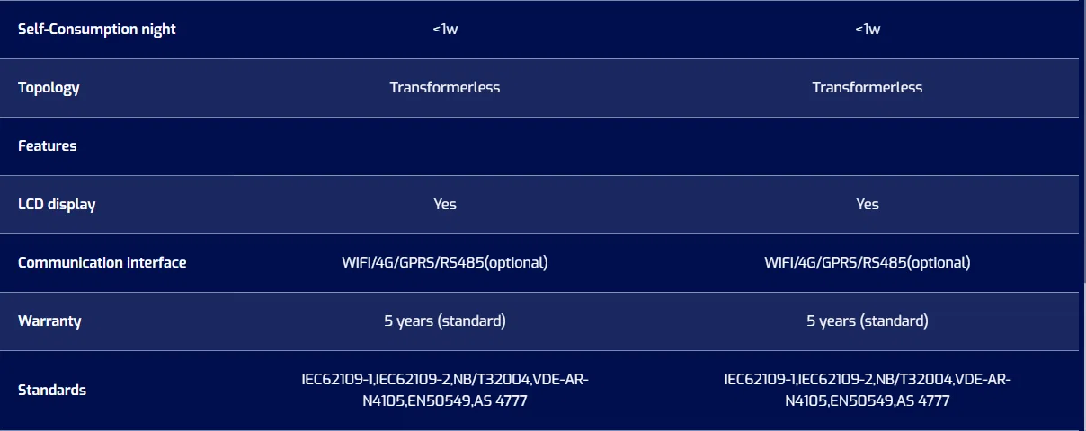- Hiệu suất tối đa 98.5%, MPPT kép, phát điện nhiều hơn