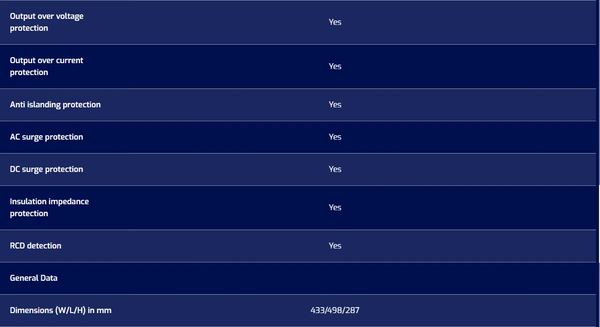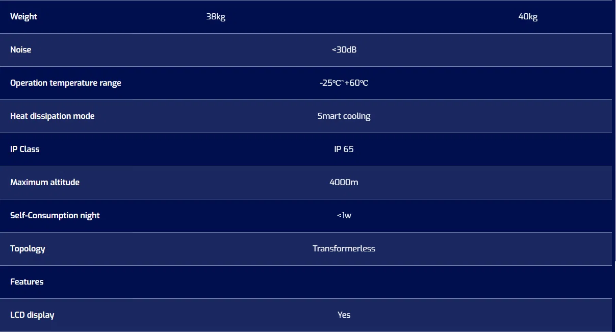 - Hiệu suất tối đa 98.5%, MPPT kép, phát điện nhiều hơn